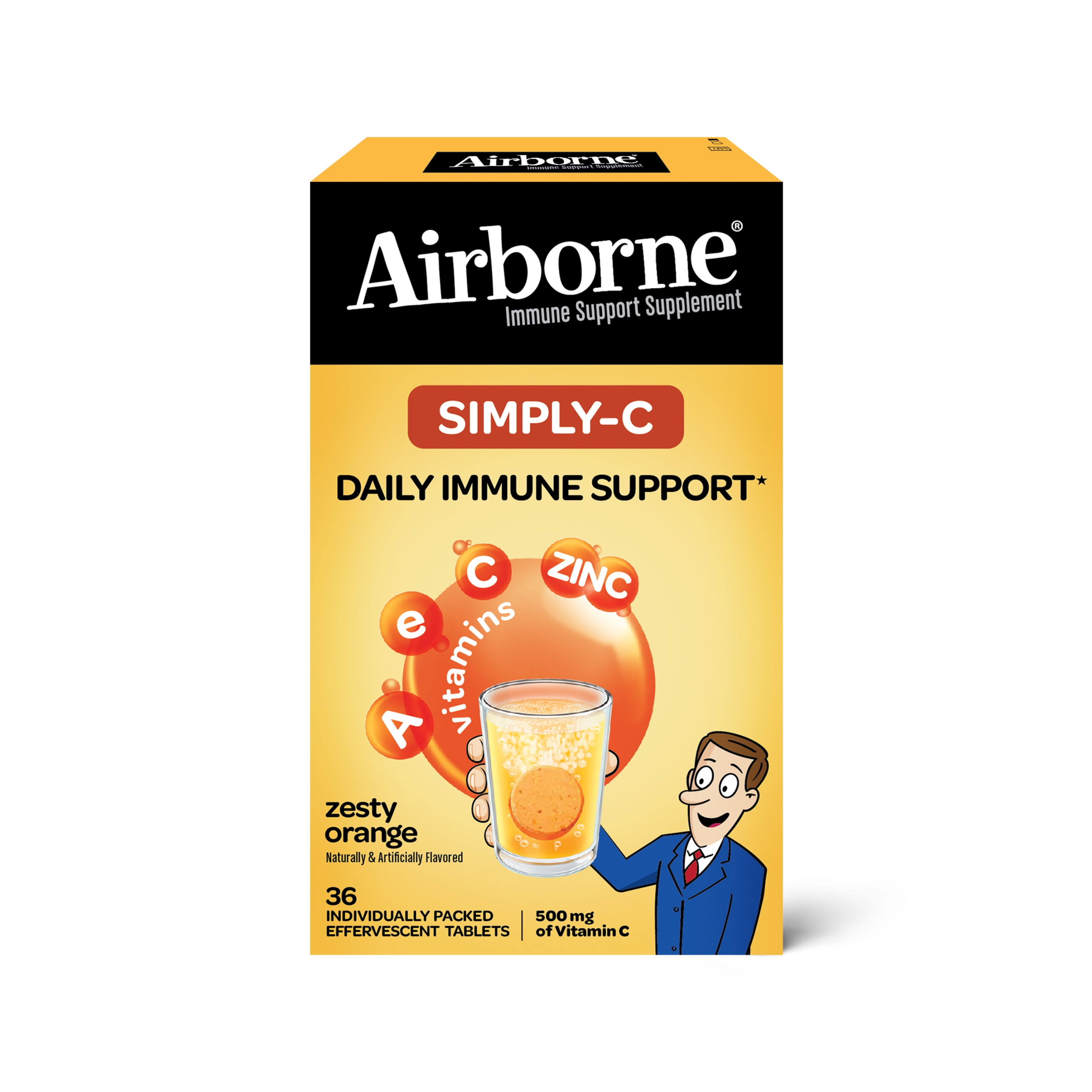 Airborne Simply C Zesty Orange Effervescent Tablets 36 Count 500mg Of Vitamin C Per Serving Gluten Free Immune Support Supplement With Vitamins A C E Zinc Walmart Com